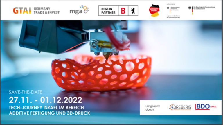 WER? Im Auftrag von Germany Trade and Invest. In Kooperation mit MGA – Netzwerk für industrielle additive Fertigung. Organisiert von DREBERIS und BDO Israel.